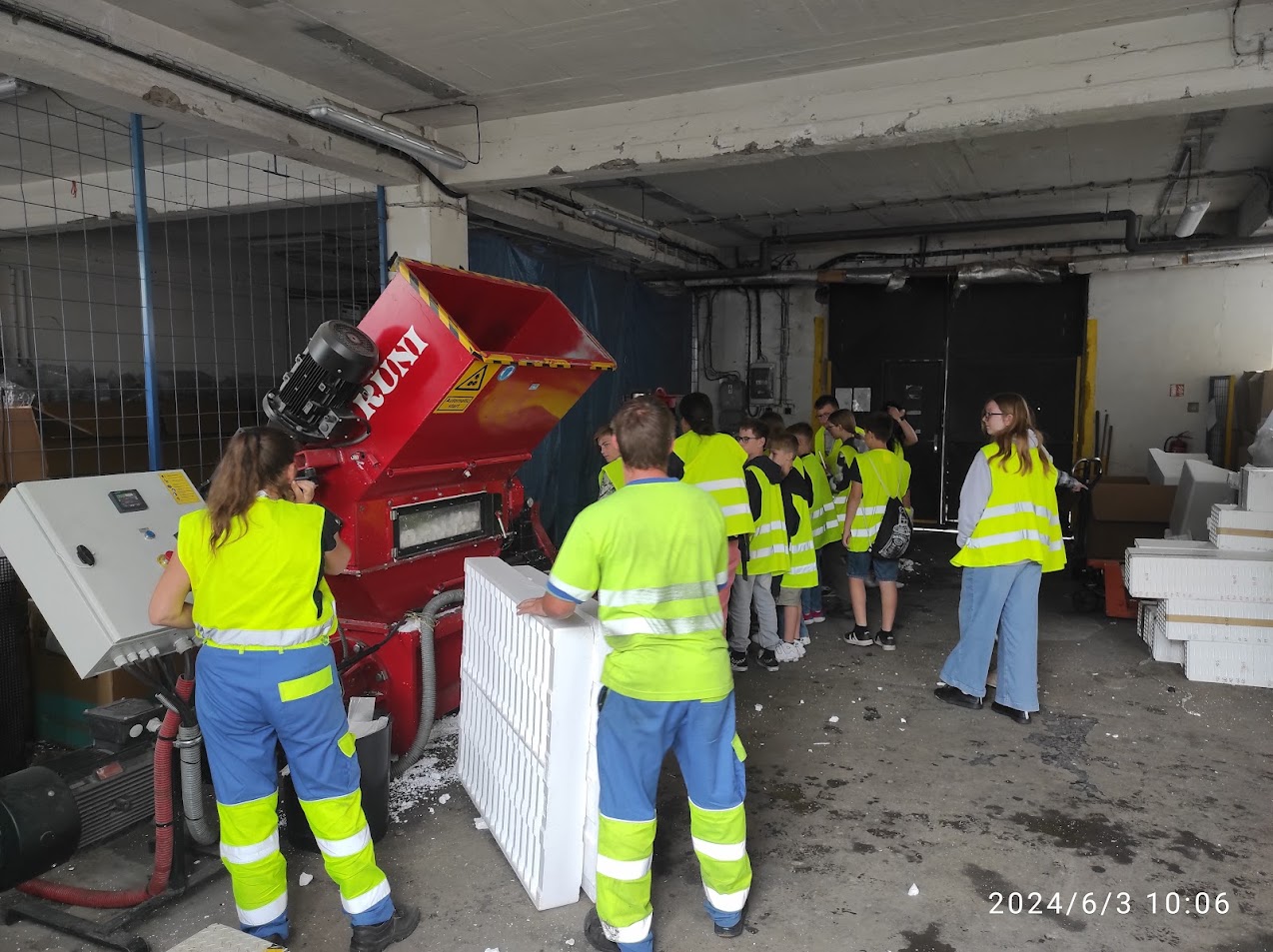 Děti viděly i drcení polystyrénu různých velikostí a barev. Přesvědčily se i o tom, jak funguje lis plastů a papíru. Nechyběla ani prohlídka skladu nebezpečných odpadů.