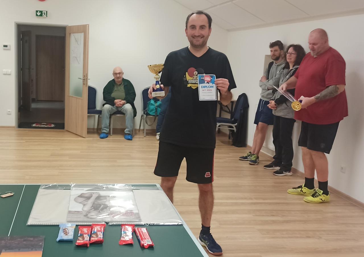 Necelé 3 týdny po turnaji čtyřher se uskutečnil na stejném místě turnaj jednotlivců. Vzhledem k tomu, že se již rozkřikla zvěst o příjemném prostředí, dorazilo do kabin celkem 22 hráčů (!). Hrálo se ve dvou skupinách, takže všichni účastníci si v nich zahráli 10 zápasů. První čtyři z každé skupiny pak postupovali do čtvrtfinále. Turnaj končil až v pozdním odpoledni, všichni odcházeli spokojeni, nejvíc samozřejmě vítěz Michal Ryšavý, který ve finále porazil Davida Andreje a obhájil tím loňské prvenství. Bronzový stupínek na bedně vybojoval Jirka Vančura po vítězství nad Honzou Lomarem. Dobrou zprávou je, že se v turnaji objevuje také mládež. Letos si s námi zahráli dvě školou povinné naděje stolního tenisu, Matěj Šubrt a Lukáš Jedlička. Dlužno dodat, že vůbec nebyli jen do počtu. Ještě poděkování Veronice Vančurové a Heleně Skákalové, které se svědomitě celý den staraly o to, aby nikdo netrpěl žízní a hladem…