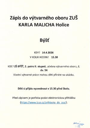 Zápis do výtvarného oboru ZUŠ Karla Malicha Holice