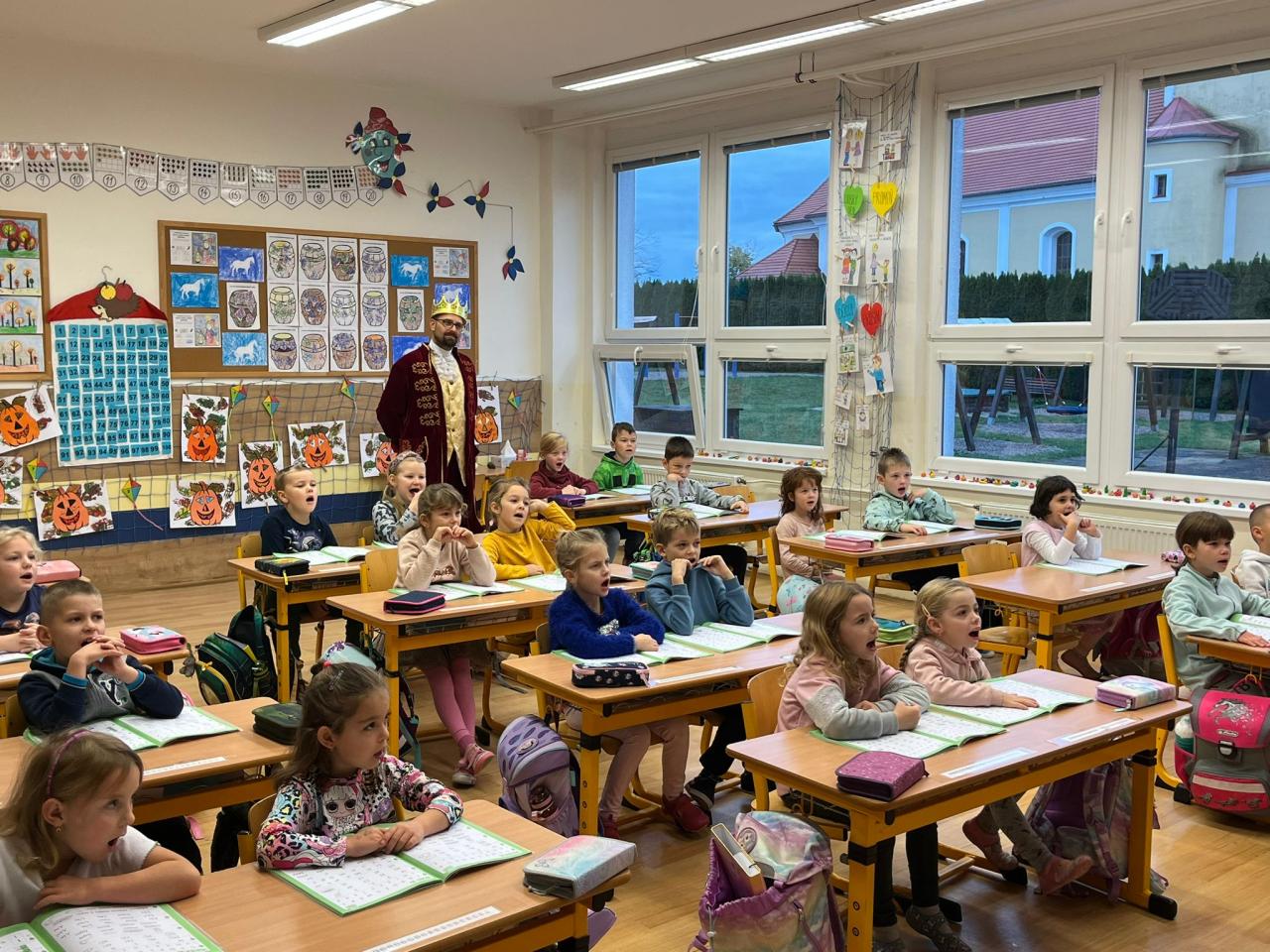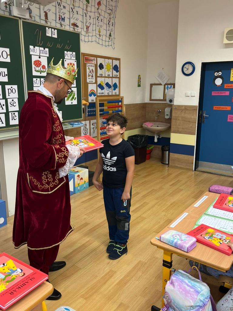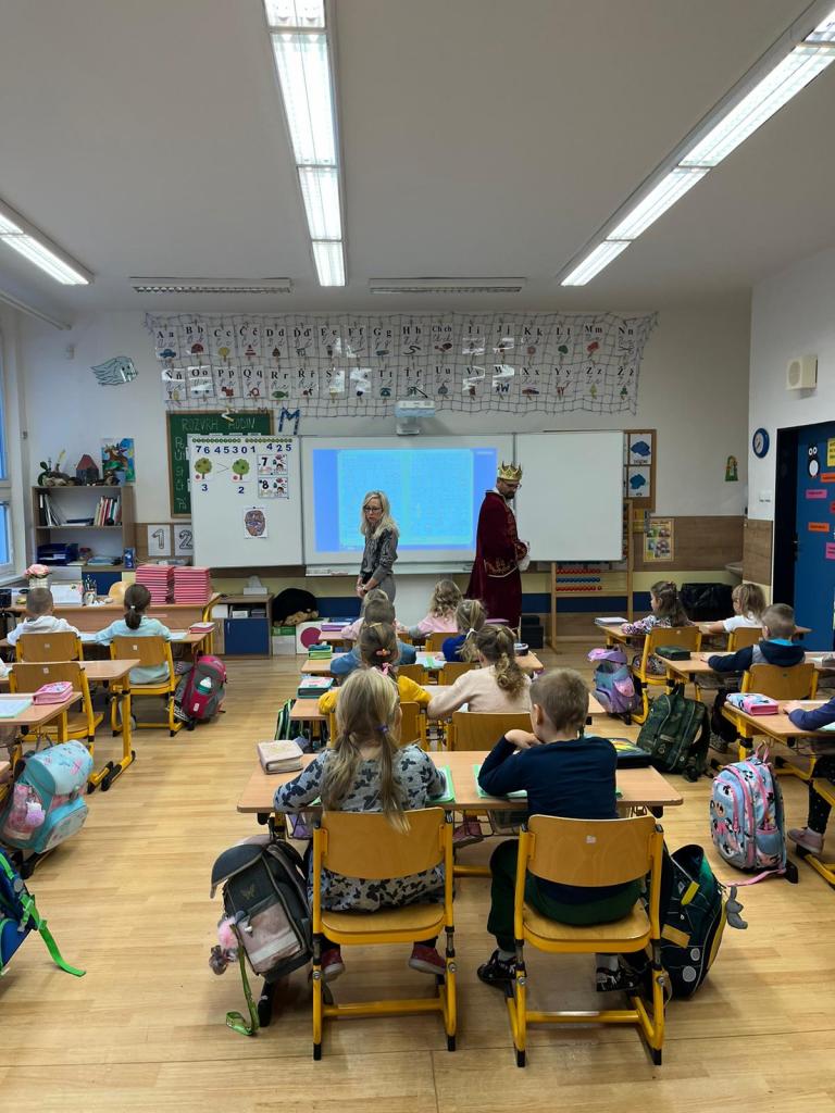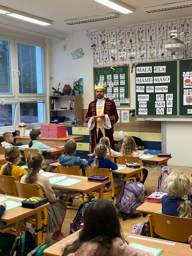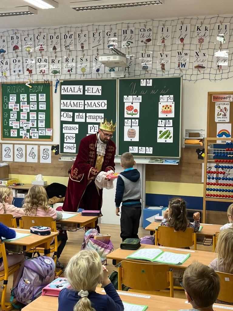 V pondělí 13. listopadu navštívil první třídu král z písmenkového království a přinesl dětem vzácný dar.