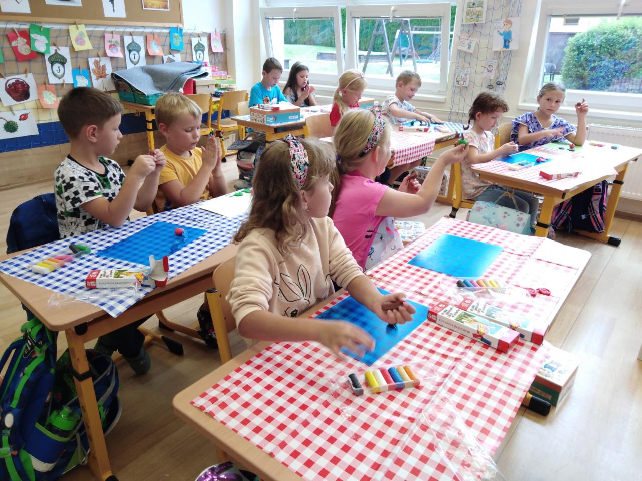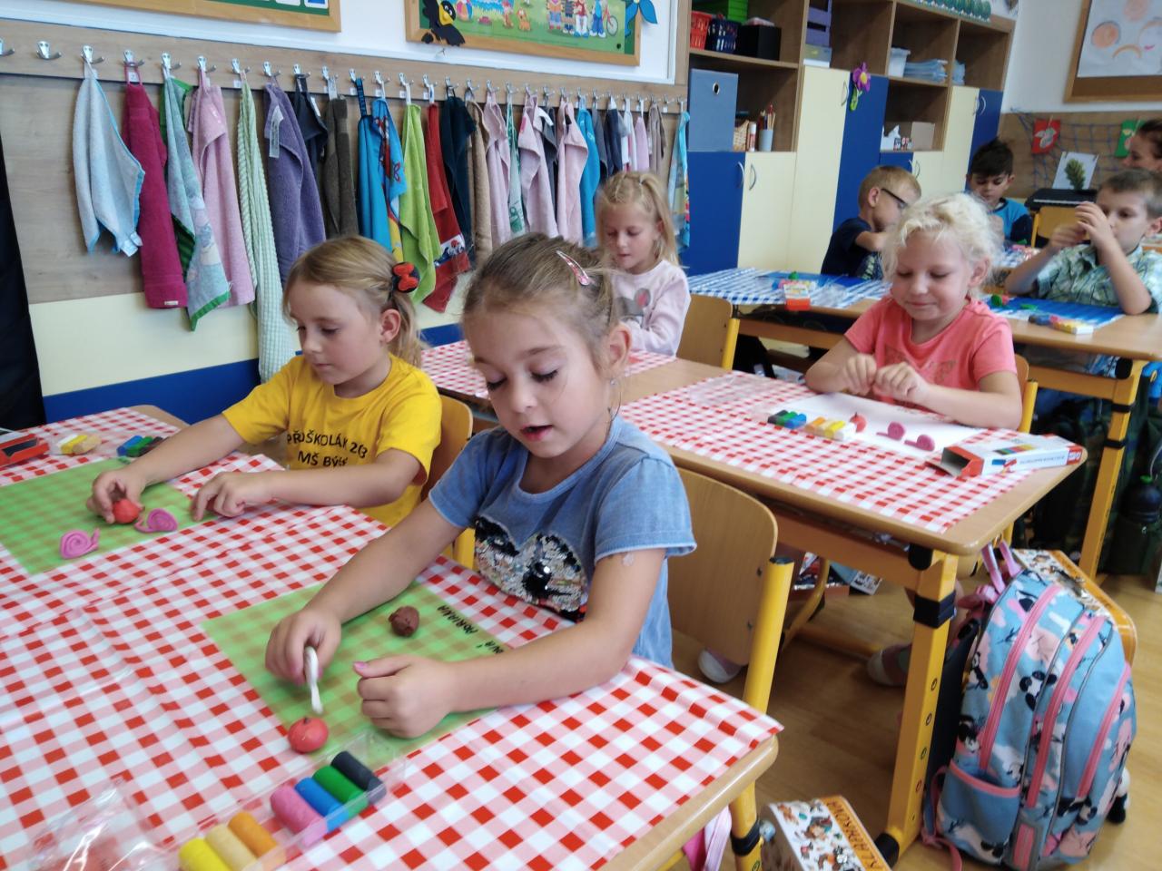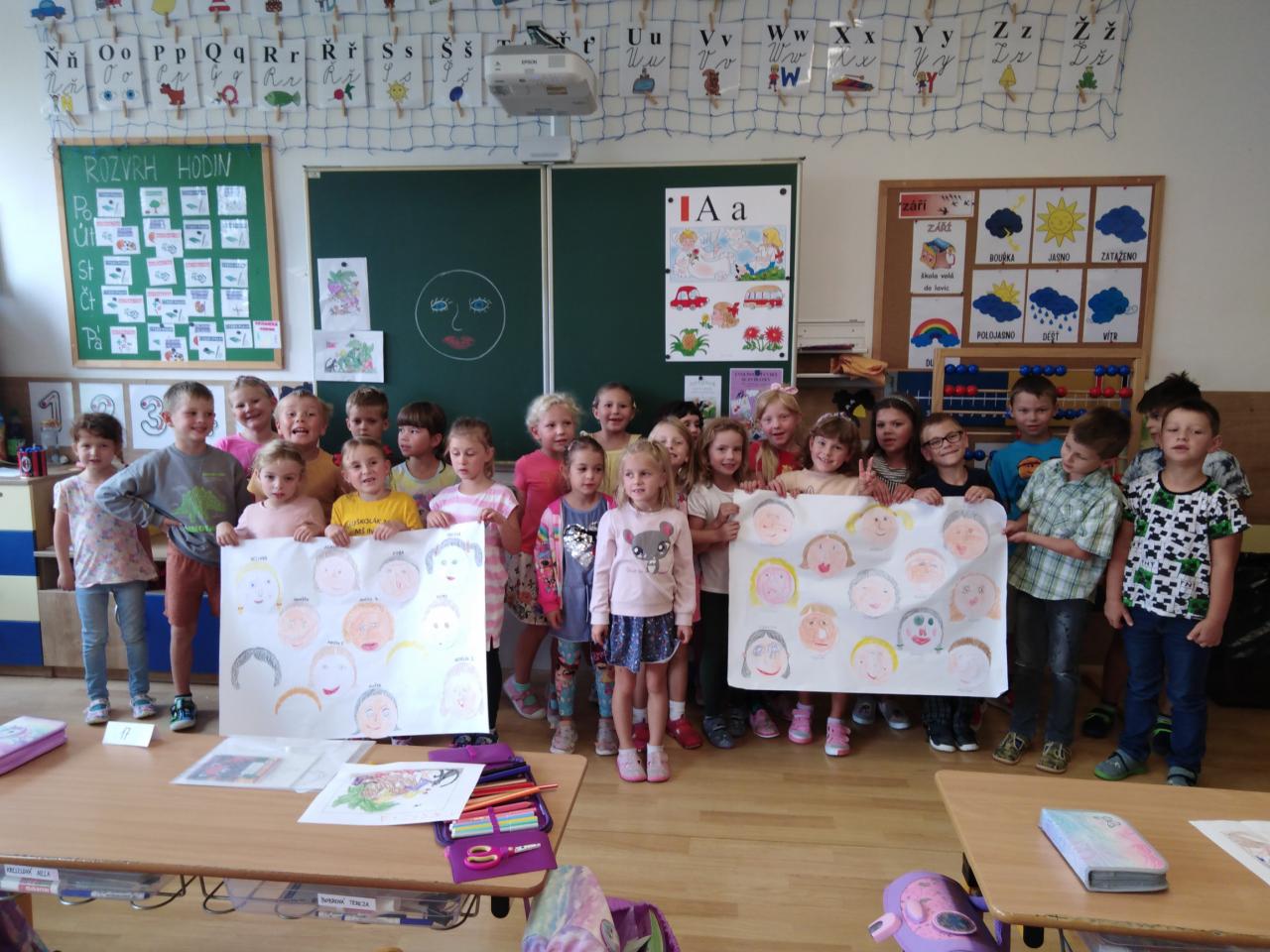 Nejprve jsme si na nástěnku vytvořili náš tým, děti si procvičily stříhání, lepení a namalovaly si svůj obličej, poté jsme prověřili ruce a prstíky při modelování. Práce nás moc bavila a prvňáčci zaslouží velikou pochvalu.