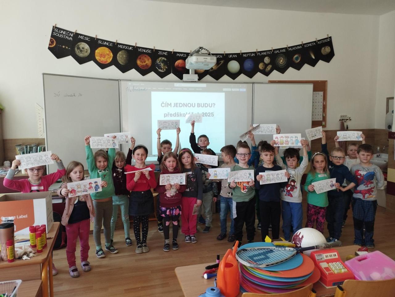 Na začátku si každý vybral předmět, který se k nějakému povolání hodí – někdo sáhl po vařečce, jiný po štětci nebo třeba po kladívku. Povídali jsme si, kdo co dělá, a děti nadšeně vyprávěly, čím by jednou chtěly být. Padaly klasické odpovědi jako lékař, učitelka nebo policista, ale objevili se i budoucí fotbalisté nebo prezident.