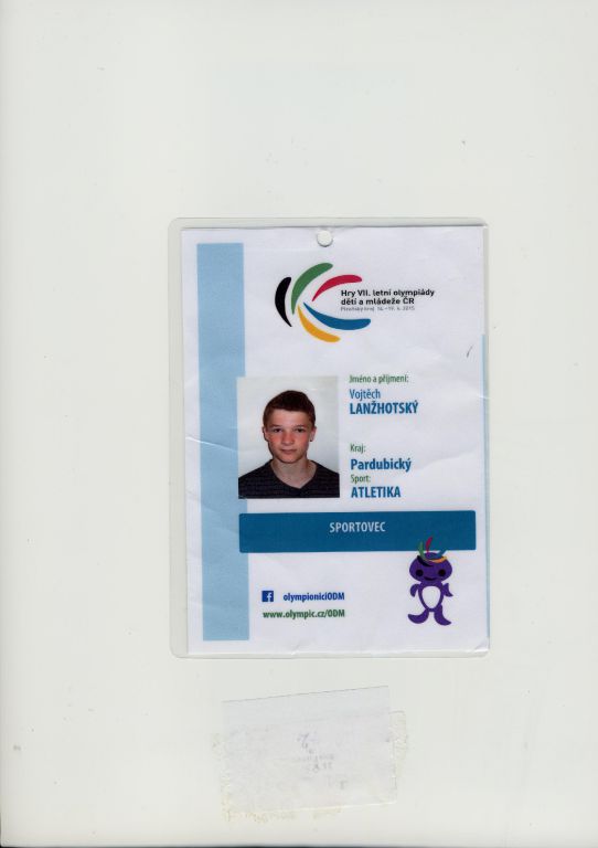 Žák 7. třídy Vojtěch Lanžhotský reprezentoval Pardubický kraj na " Hrách VII. letní olympiády dětí a mládeže ČR ".